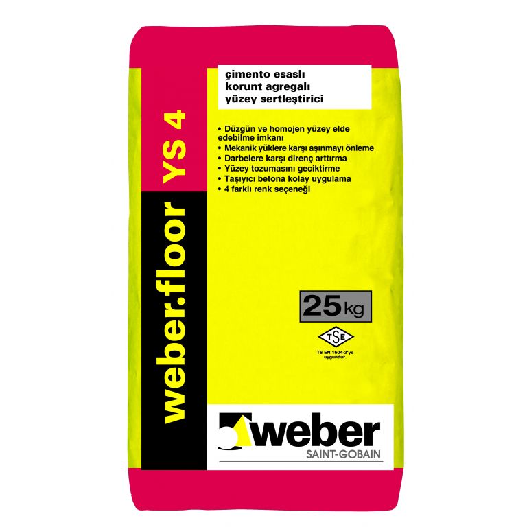 Ağır yüke ve yoğun araç trafiğine maruz kalan endüstriyel zeminlerde yüzey aşınma direncini yükselten çimento, özel seçilmiş agrega, korunt, pigment ve özel katkı esaslı yüzey sertleştirme harcı